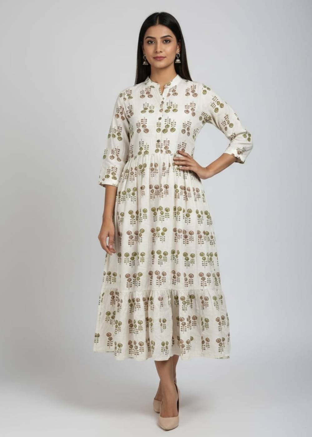 Flowy A-Line Pure Cotton Halfwhite Umbrella Kurti