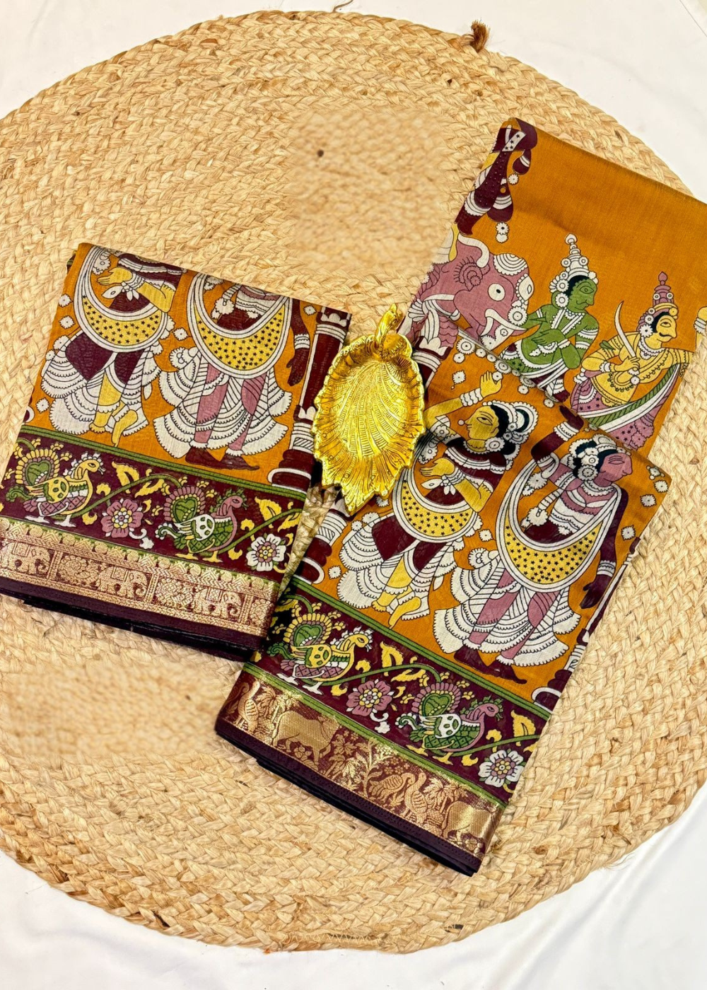 Mustard Gold Kalamkari Heritage Saree