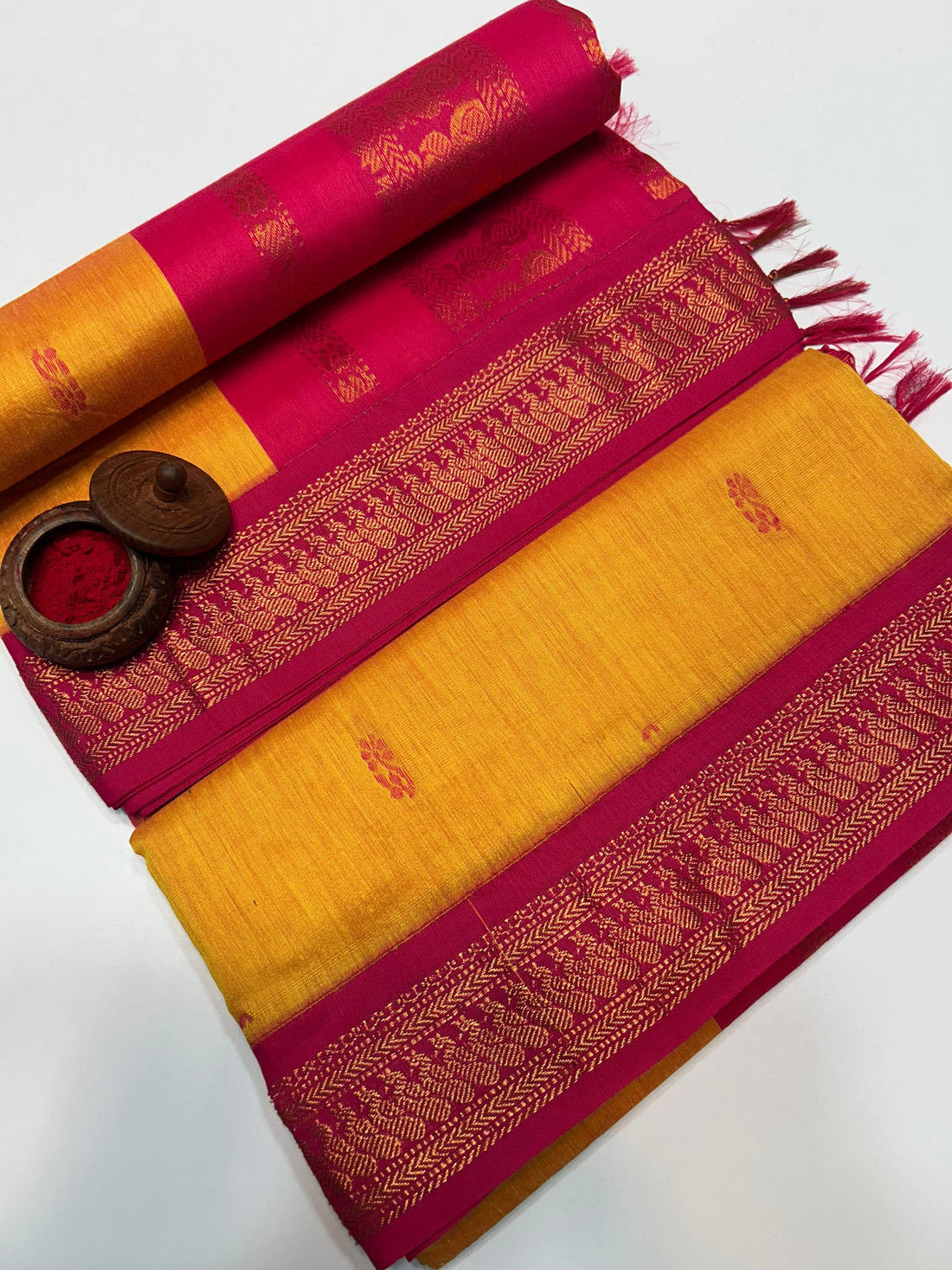 Yellow Kalyani Cotton Saree with Maroon Zari Border