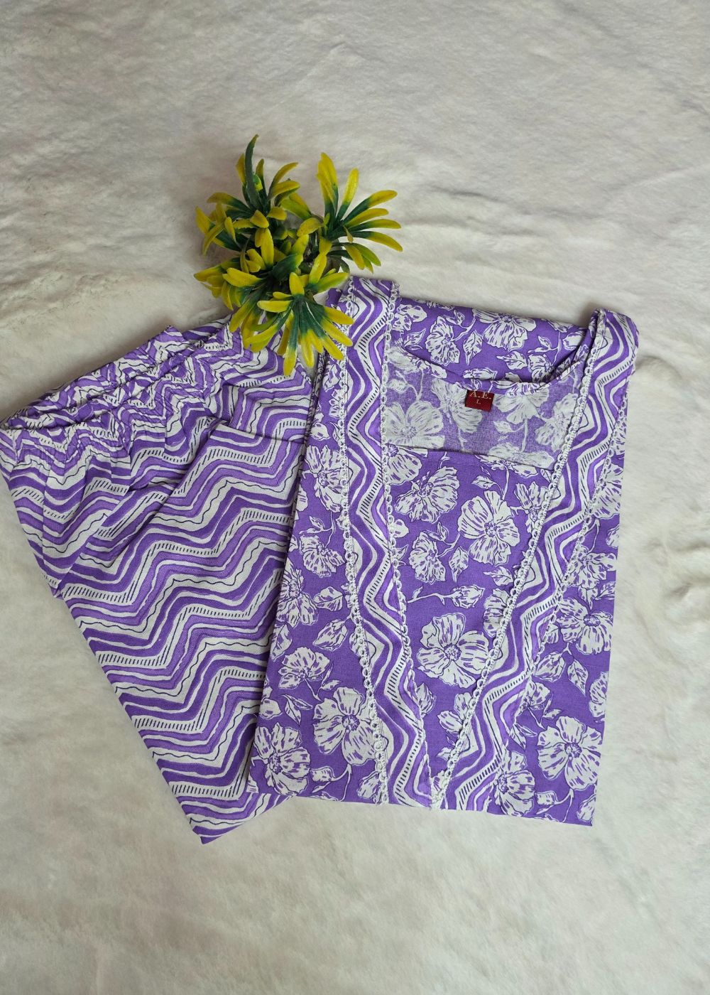 Daily Wear Cotton Lavender Kurti with Matching Pant