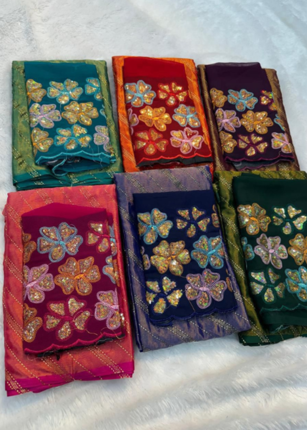 • Elegant floral sequin embroidery