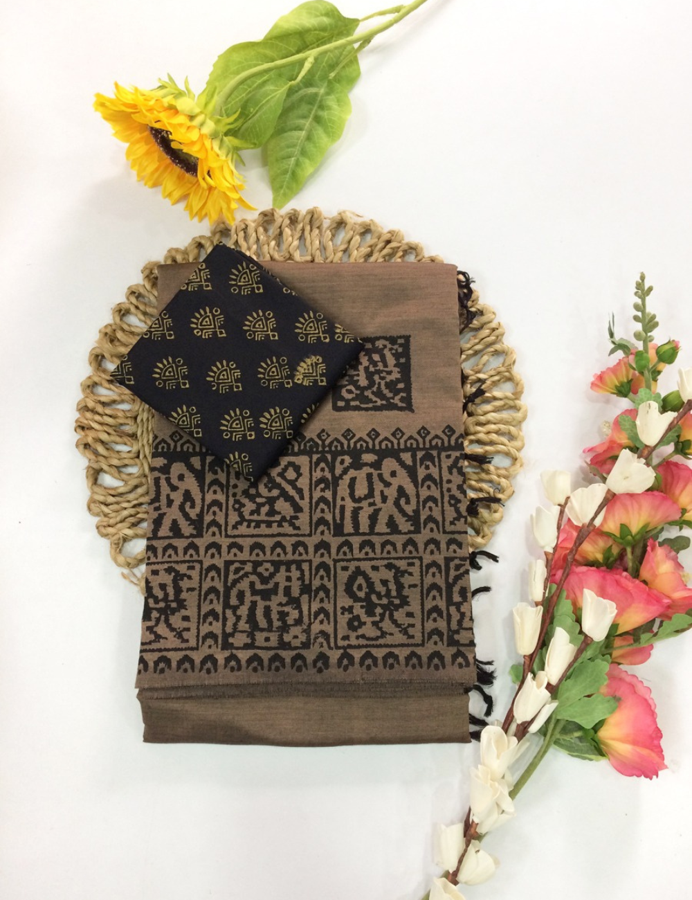 🌿 Elevate your style with this Premium Cotton Blockprinted Saree 🌸, crafted from soft and breathable fabric for all-day comfort. 🎨 The intricate block prints add a touch of timeless elegance, while the set includes both a self blouse 👗 for subtle sophistication and a contrast blouse 💫 for a vibrant, trendy twist. Perfect for everyday wear as well as festive occasions, this saree blends tradition with modern charm effortlessly ✨.