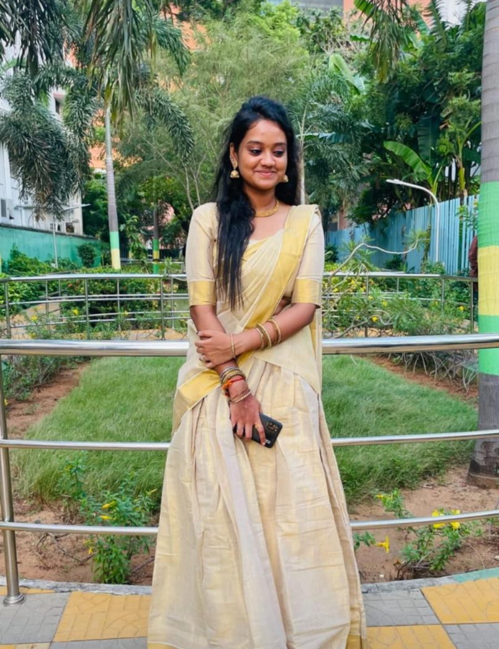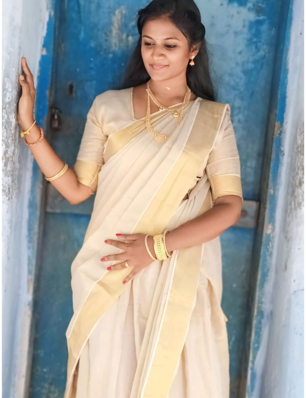 *Blouse:* Fully stitched Premium Kerala tissue silk with beautiful gold zari jacquard border in the sleeve and designer patterns in the front & back neck.